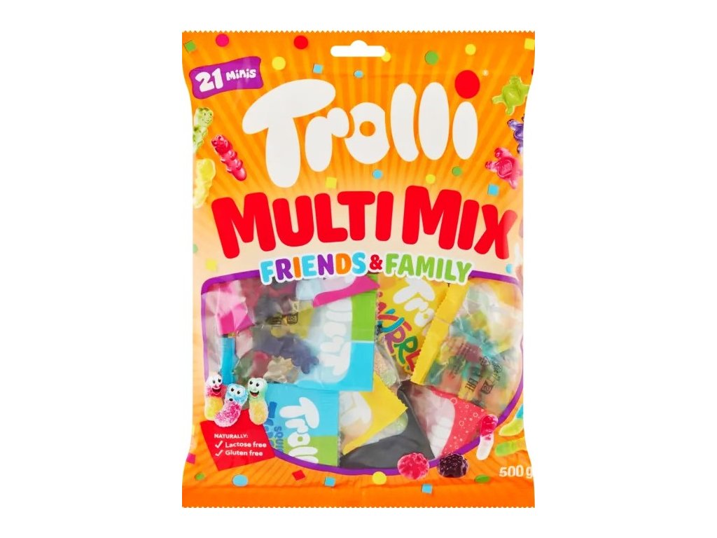 Una mezcla variada de deliciosos dulces Trolli en un paquete familiar.
