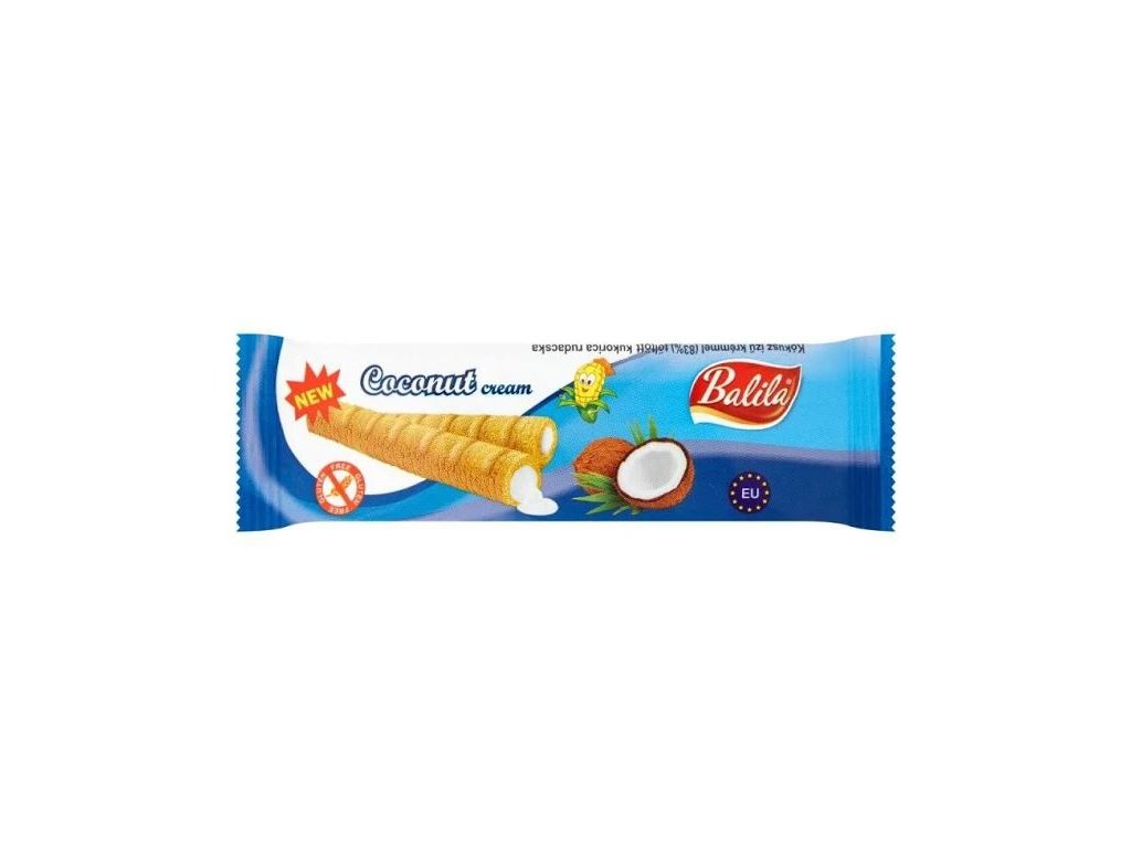 Tubos de maíz rellenos de crema sabor coco (83%).