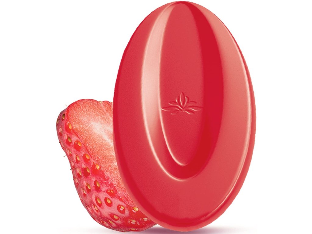 - La base es de chocolate blanco complementado con fresas liofilizadas (liofilizadas) (14%).
