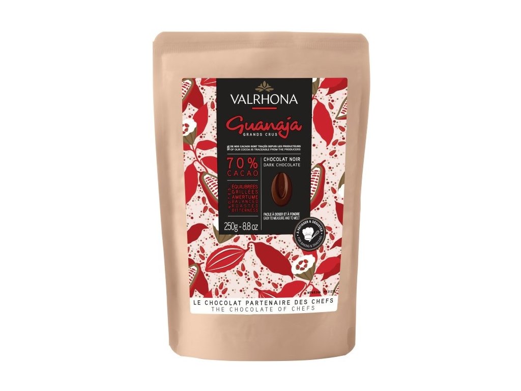 Chocolate negro Feves Valrhona GUANAJA con 70% de contenido en cacao.